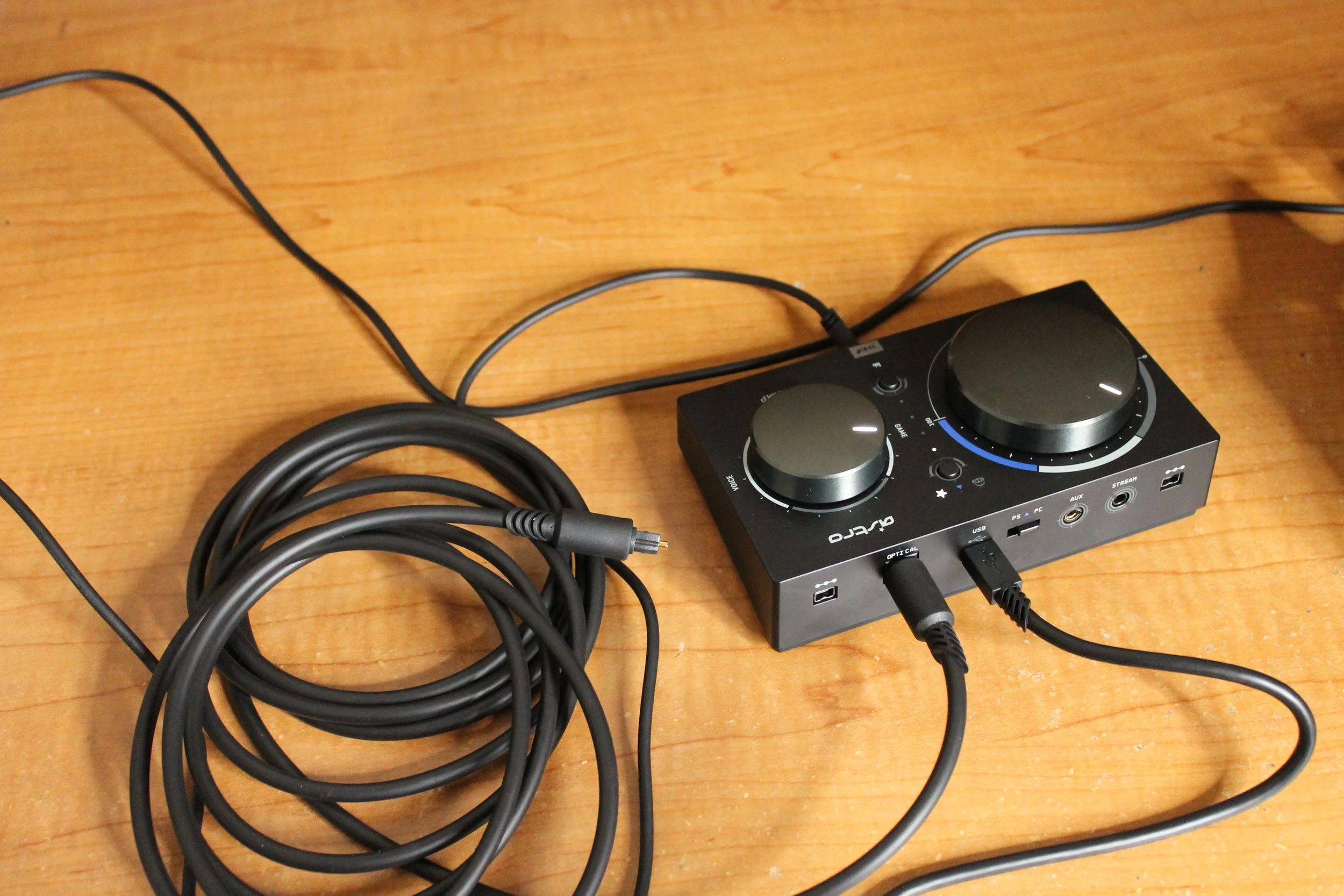 USB cable, optical cable, and A40 plugged into the MixAmp Pro TR.