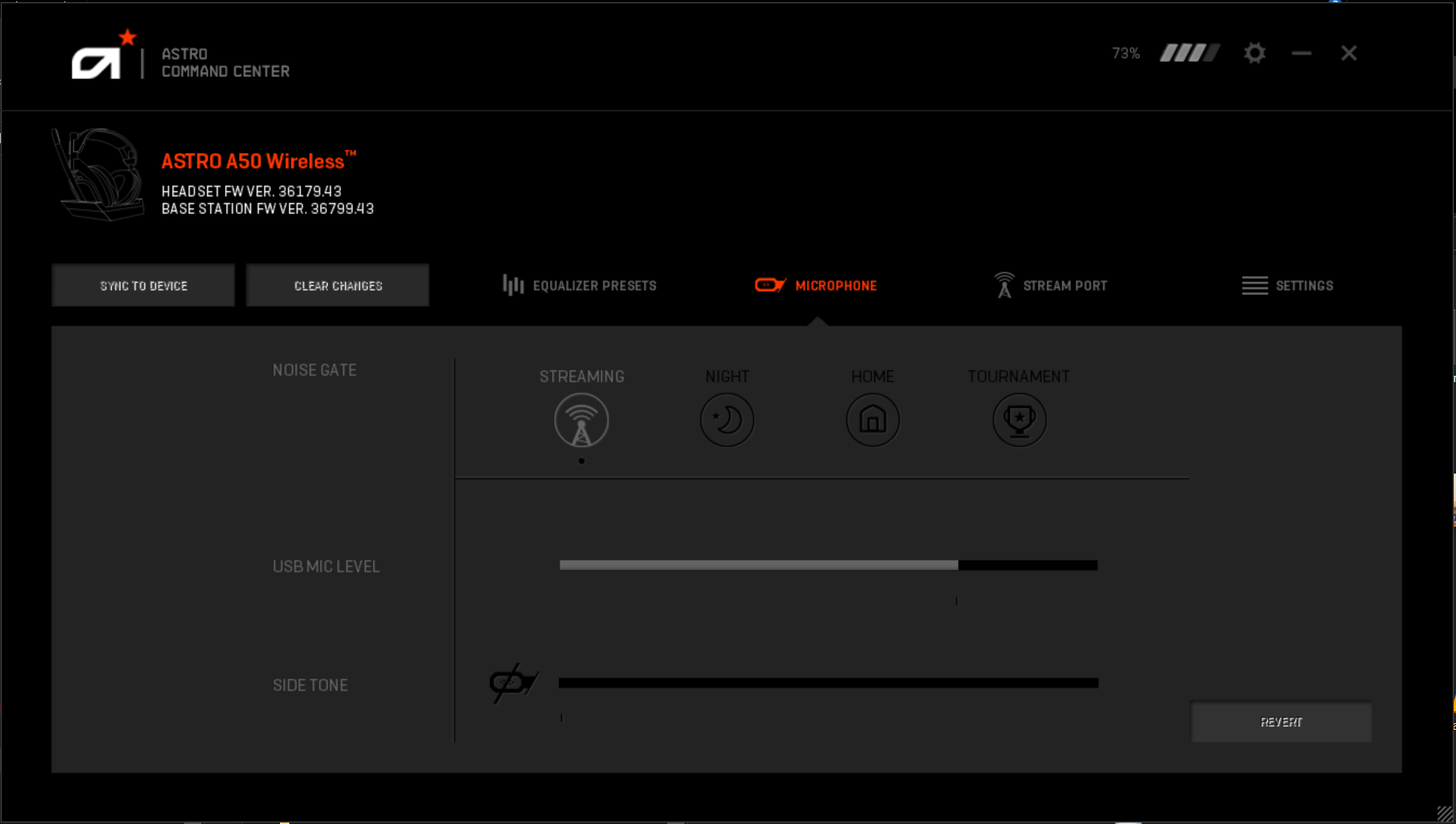 Access Astro Command Center software to make headphone adjustments, set mic side tone, and toggle between different mic noise gates.