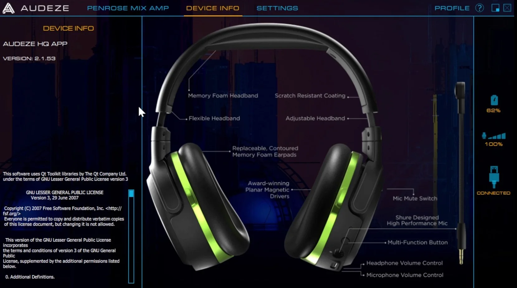 I assume Audeze wants the physical headset itself to function as a hardware key for the software, but I find it annoying that you can't just plug in the dongle and access all the headset functions from there. Without the USB-C connection, you can’t use Audeze HQ at all.