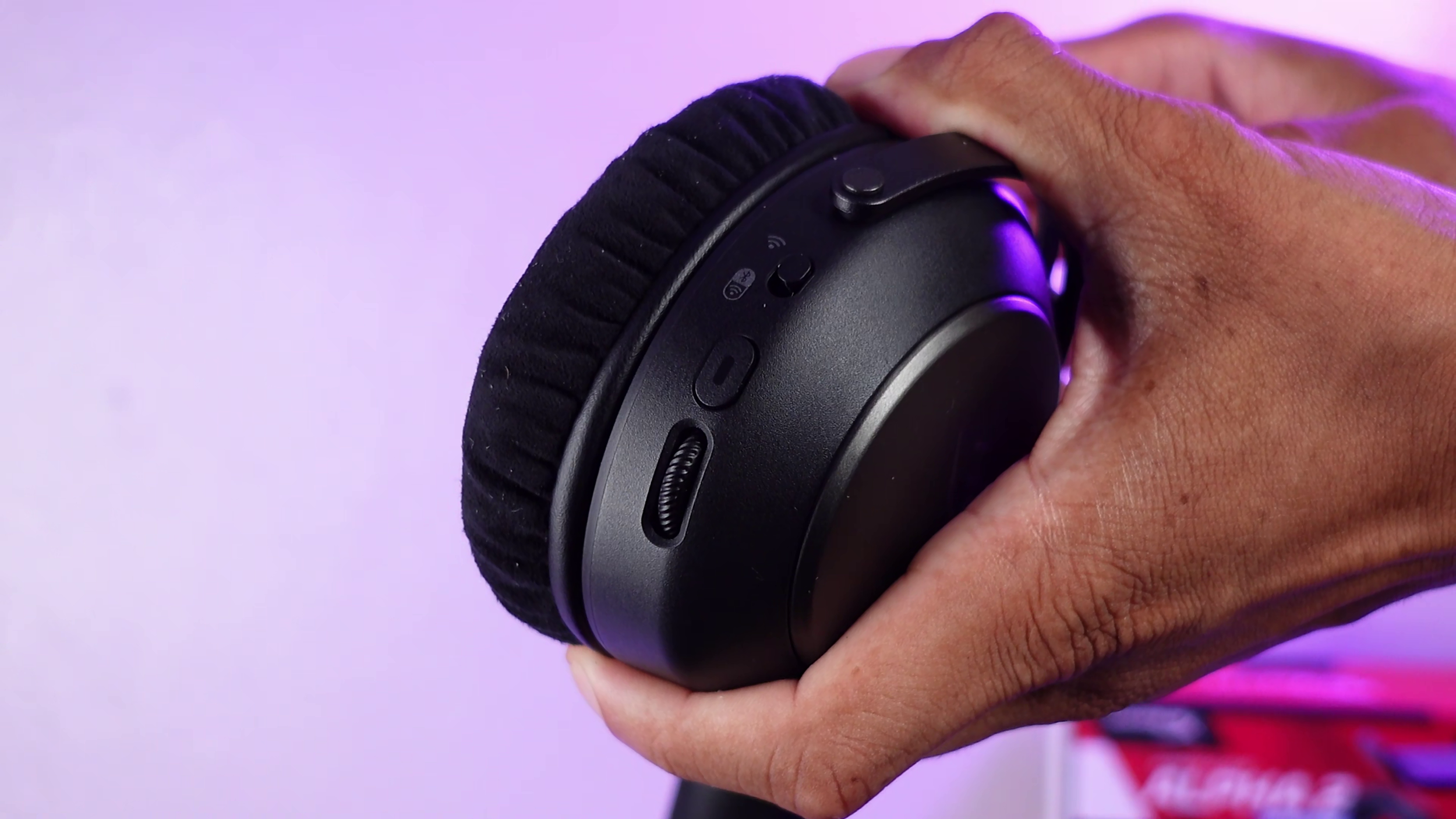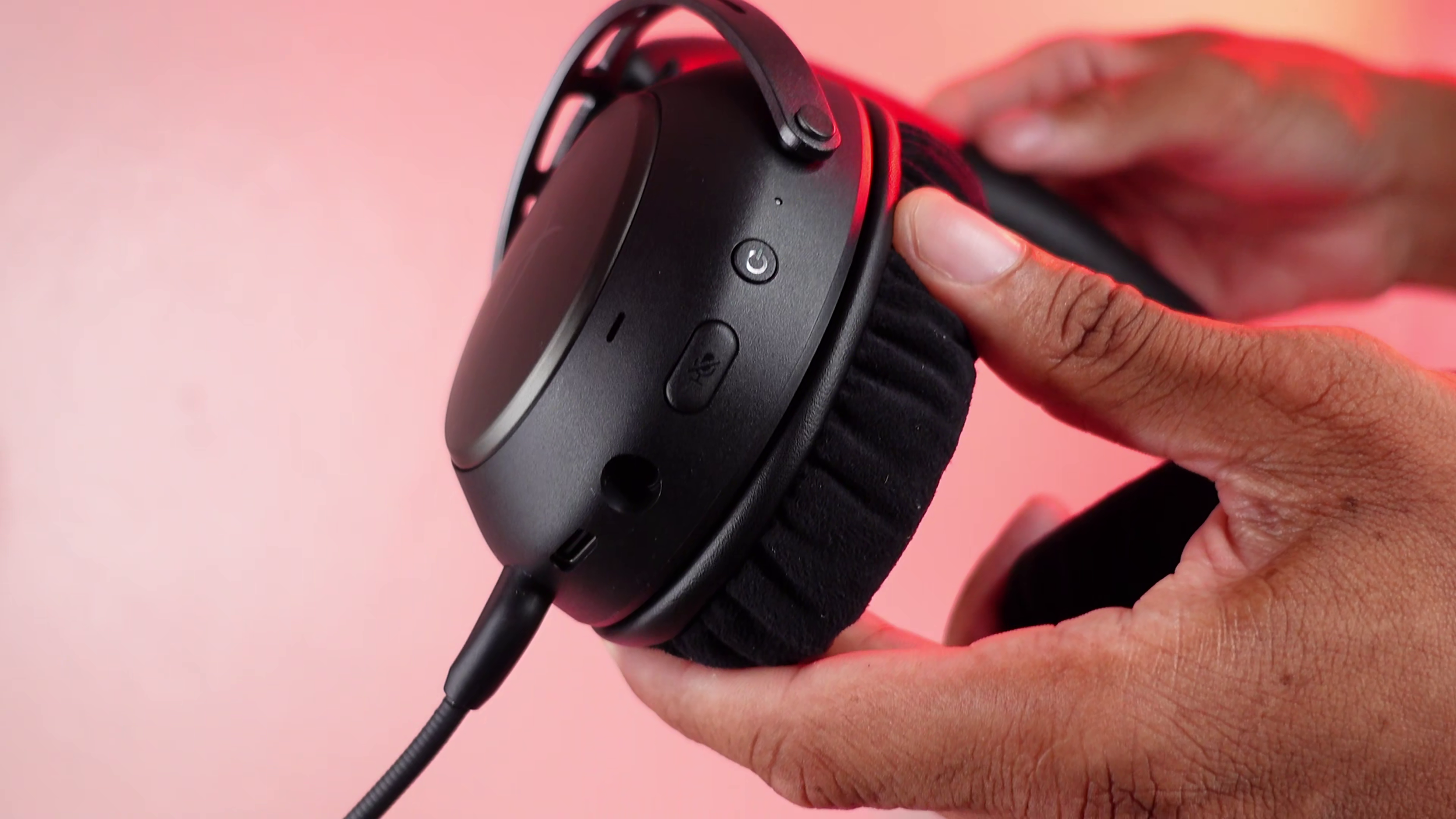 On the headset itself, starting with the left earcup, there’s the power button and mic mute. The right earcup has a 2.4 GHz and dual audio switch. There is a multi function button for media controls. Finally there's the volume wheel which is independent of system volume.