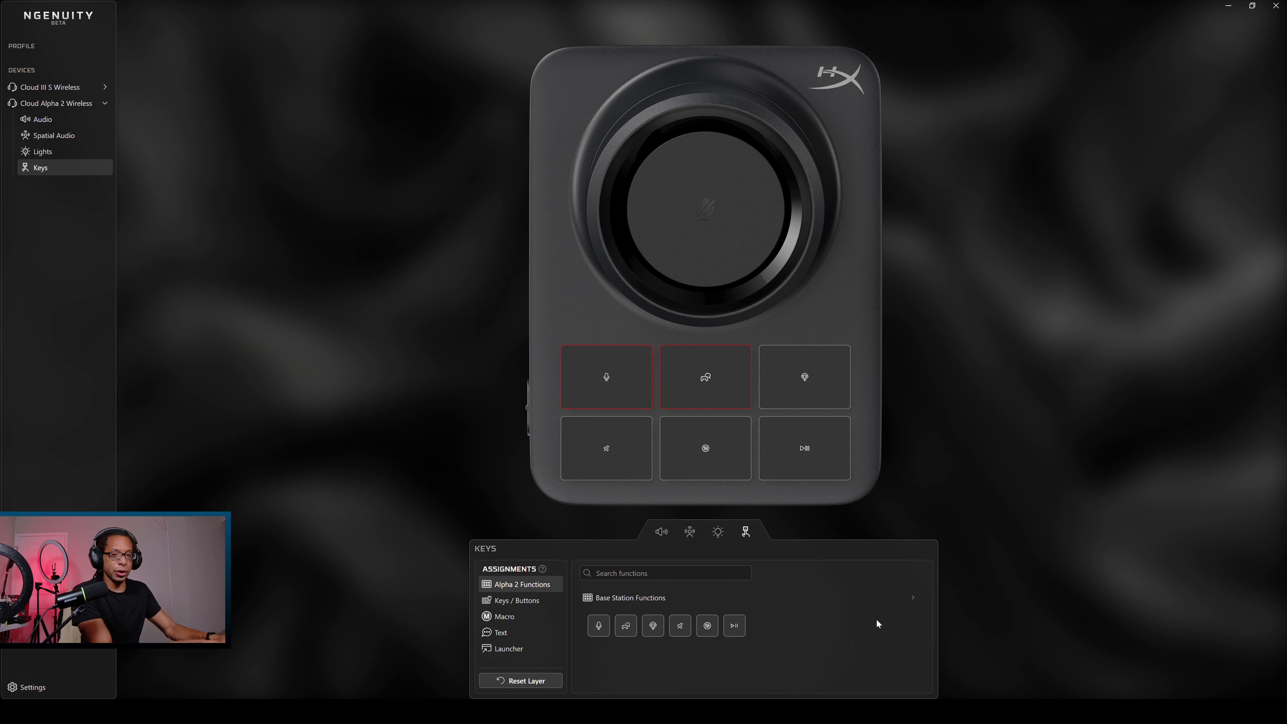 This also has a fourth function which is setting up hotkeys and macros, but that's not finished yet - more on that in the software section. Out the box, here are the Base Station controls: