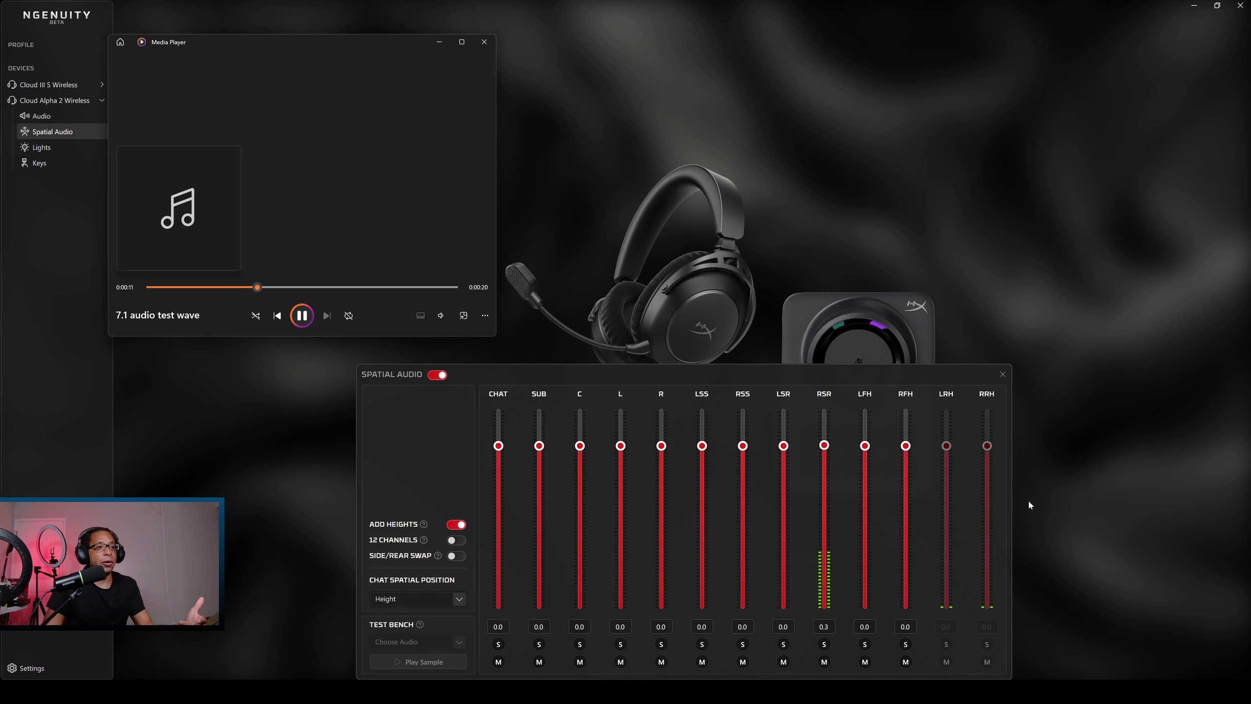 The headphone equalizer is the first one. Currently there aren't any default presets, so you have to make your own. You have to have your audio playback set to “NGENUITY 8 Channel Spatial” - otherwise you won't hear any of these changes. None of these save to the headset itself currently, so the Alpha 2 is reliant on this software being open on PC.