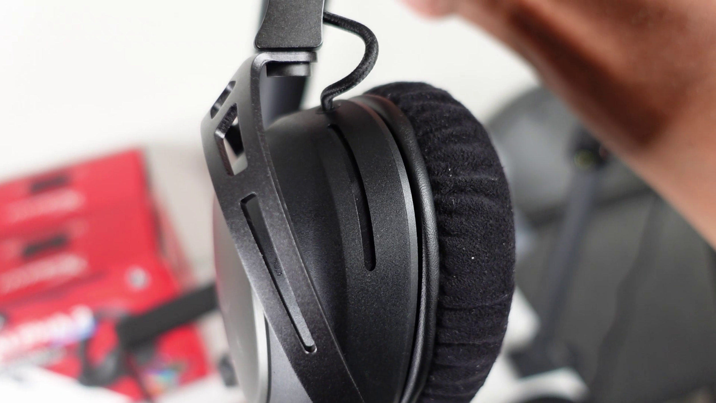 The Alpha 2 gets an A in comfort - it’s almost perfect. HyperX switched it up. Unlike most of their headsets, this has microfiber cloth instead of pleather. I didn't think I'd like it, but it's got the perfect amount of padding and it's not scratchy.