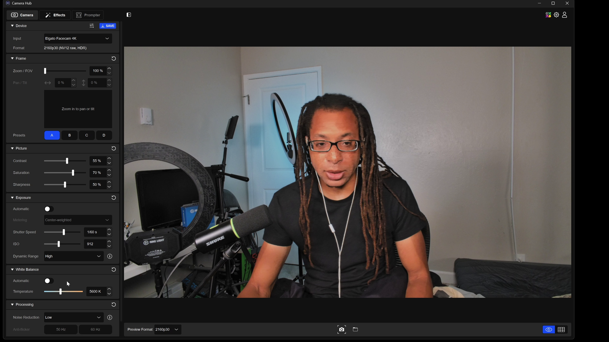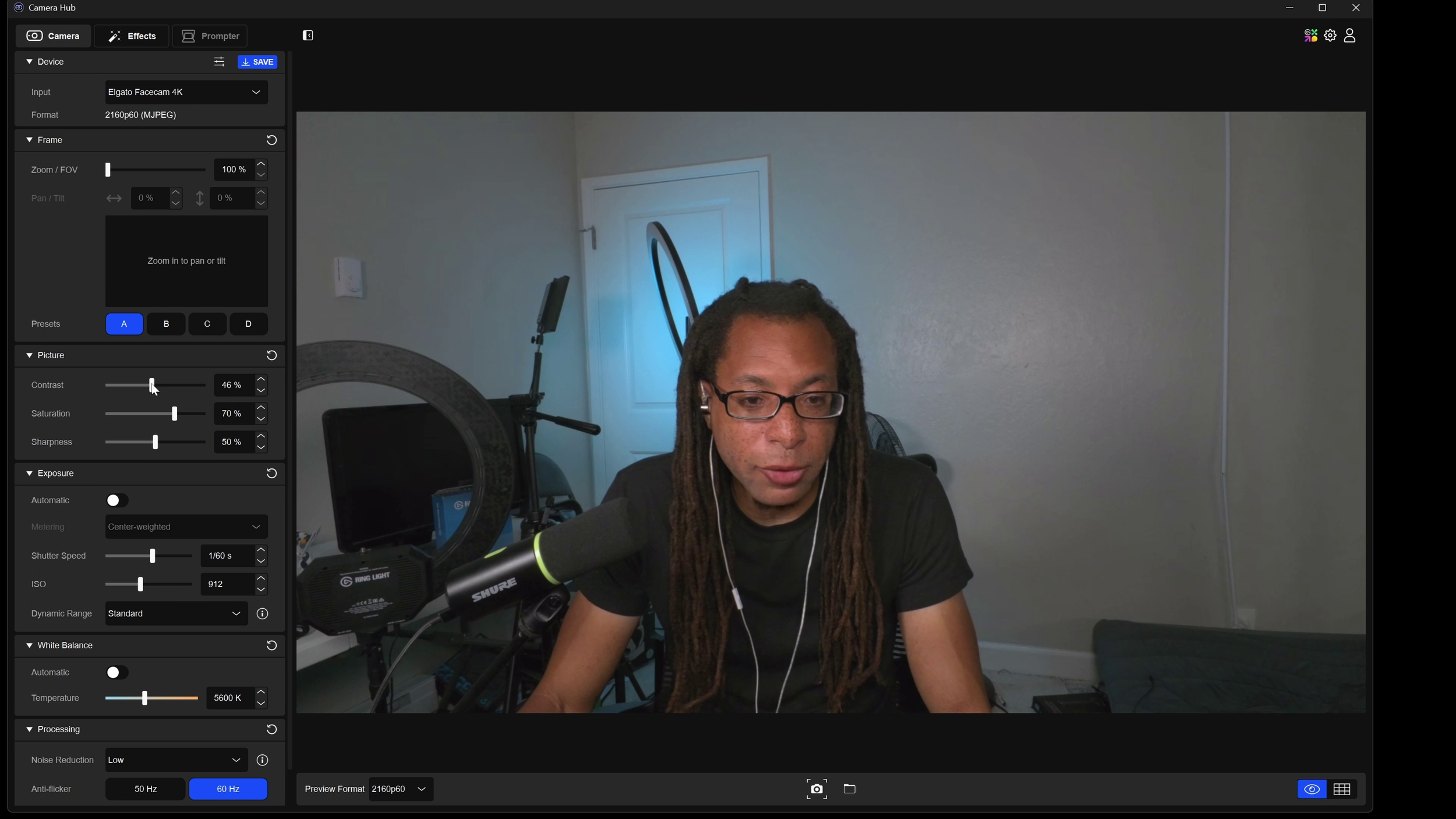 Camera Hub has always been some of the best webcam software. It allows you to control the settings of the Facecam 4K as if it was a DSLR. Well, mostly. You cannot adjust the aperture, but the shutter speed, ISO, and white balance are all labeled like in a real camera.