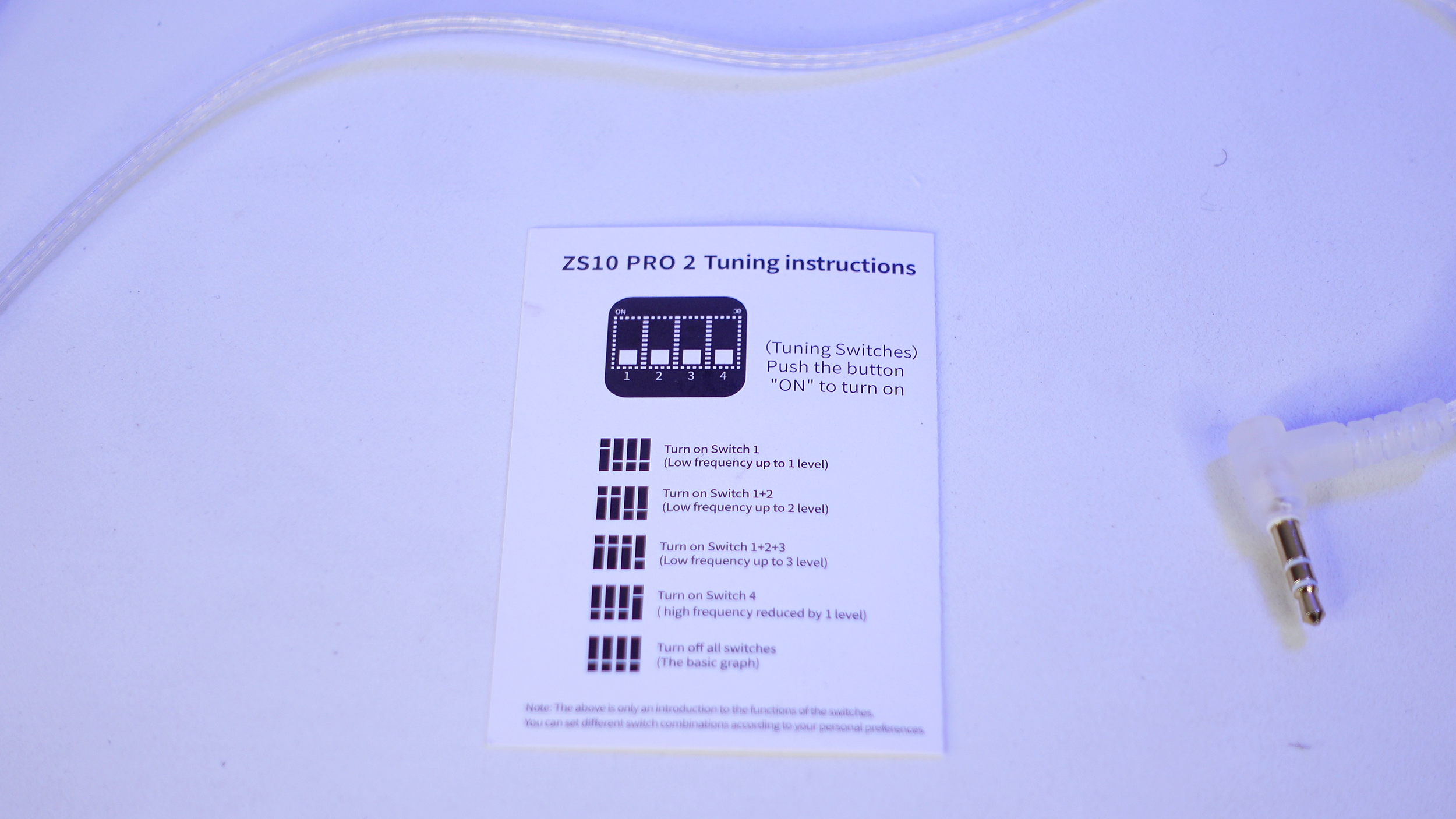 Audio equalizer. The ZS10 Pro 2 has four tuning switches that can be used to adjust the sound.