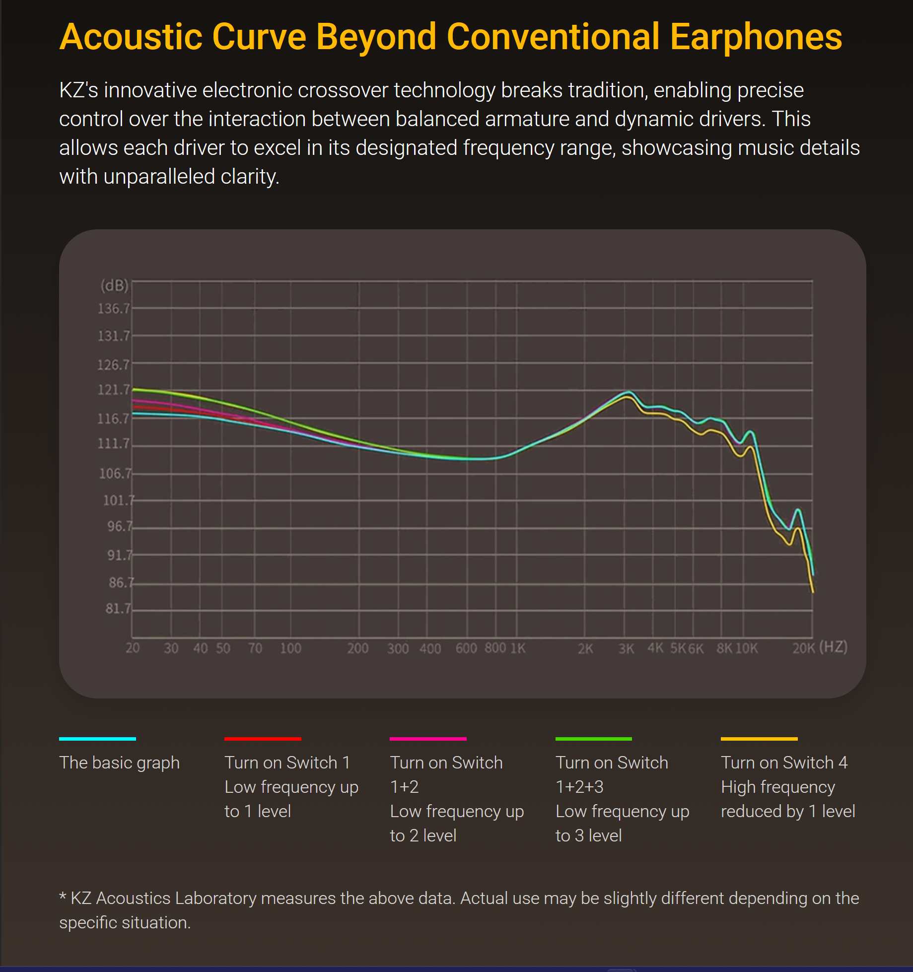 I measured the frequency response of these IEMs with their silicone tips with my miniDSP EARS (not industry standard). The measurements differ from Knowledge Zenith’s (KZ) official graphs, so I’ll share both for context.